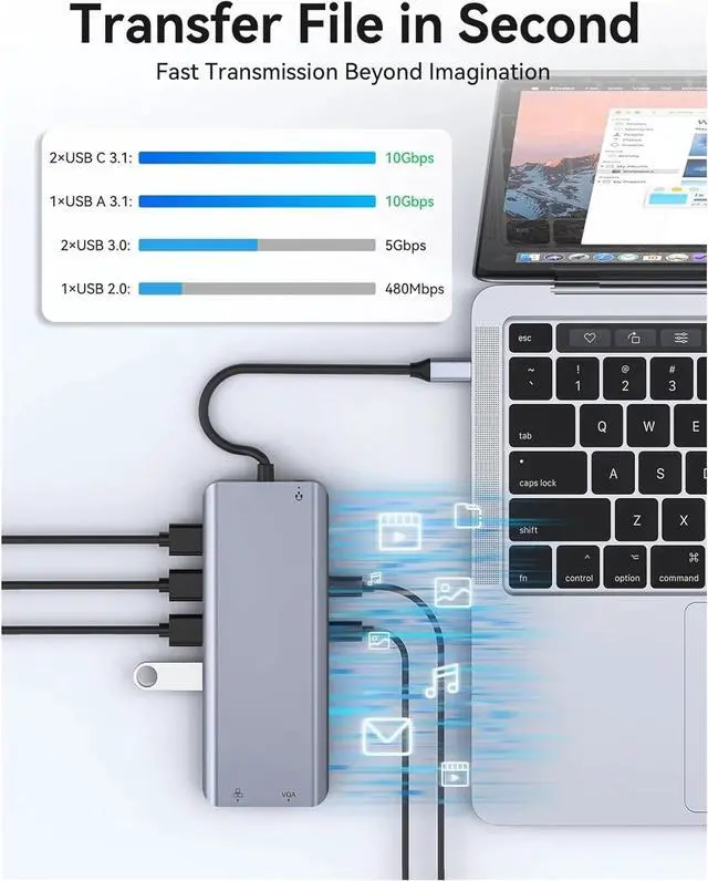 USB C HUB USB-Type C To 4K HDMI DP VGA Gigabit Ethernet USB 3.1 PD 100W Adapter, Compatible For Macbook Air/Pro Laptops Accessories for Data connection.