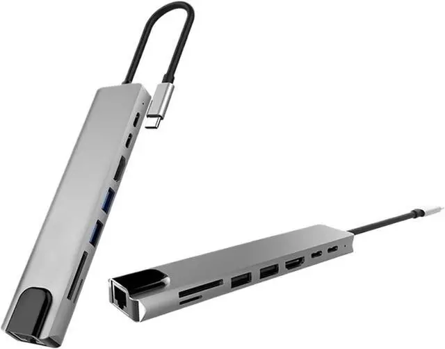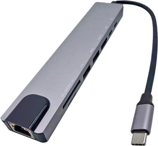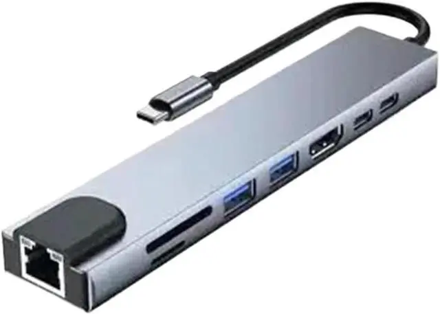 This 8-in-1 USB C hub boasts a variety of features, including HDMI 4K support, RJ45 Ethernet connectivity, TF SD reader, and USB-C 3.0 tysc docking station compatibility.