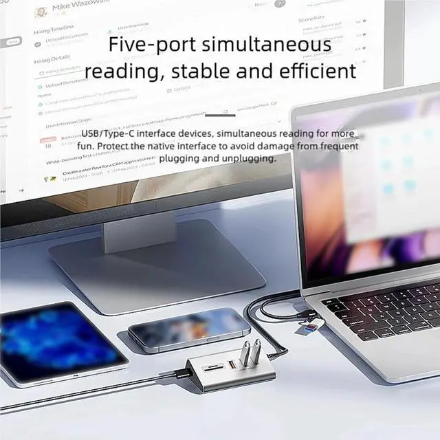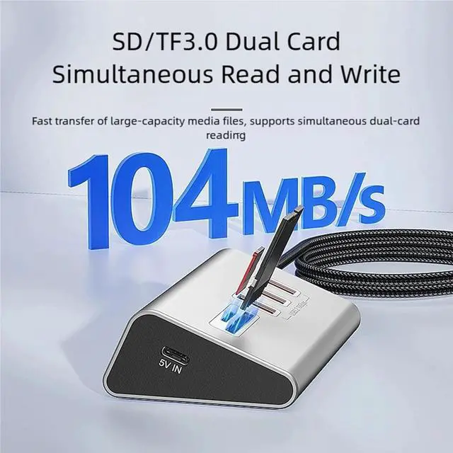 Quick card slot accommodates small cards with 104MB/s transfer speeds, great for photographers and creators to efficiently manage card files.