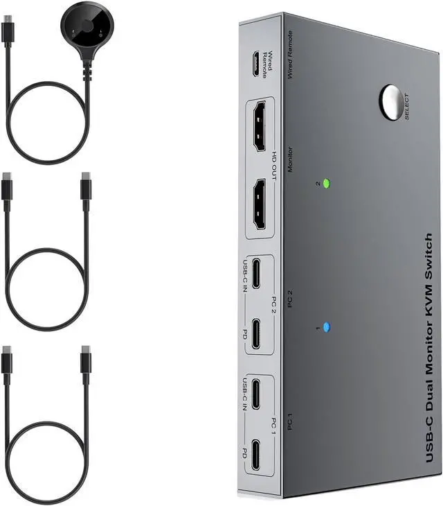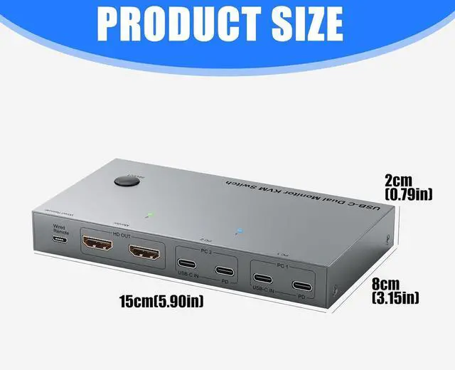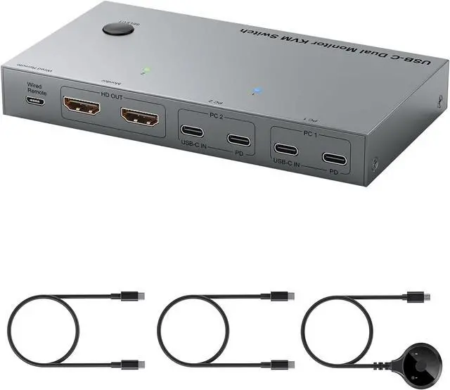 Perfect for home offices or workstations, this switcher eliminates desk clutter by centralizing connection between double monitors, laptops, and USB devices, enabling quick toggling via remote or front panel button