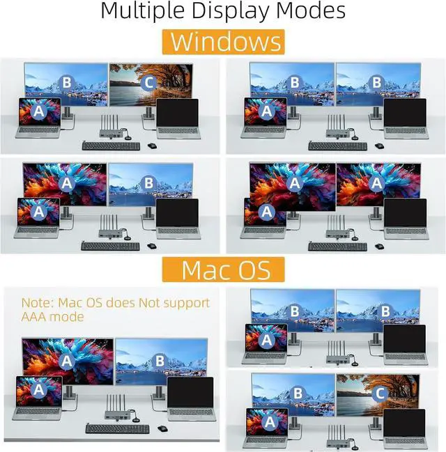 Engineered for stability, the USB C docking station ensuring 4K@60Hz output and recognition across both laptops, with backward compatibility for lower resolution