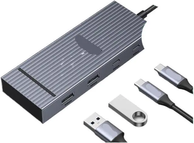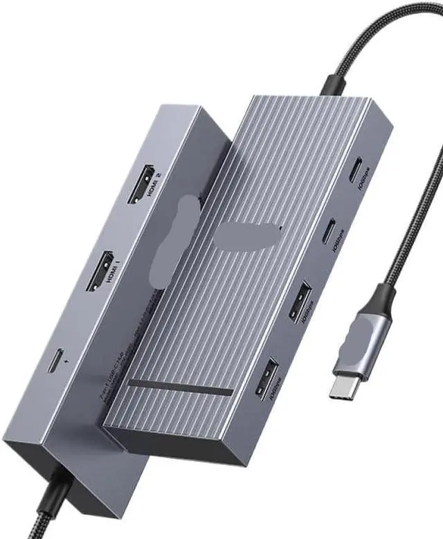 7-in-1 design integrates 2 HDMI ports, 3 USB-A 3.0 ports, 1 USB-C data port, and 100W Power Delivery in a compact form factor