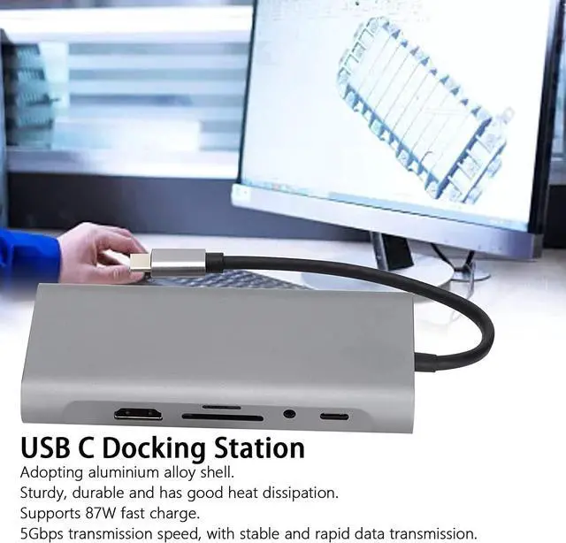 CONNECTIVITY: This USB C docking station offers 11 ports in 1 compact design, including HDMI, USB 3.0, SD/TF card readers, and RJ45 Ethernet, providing seamless connectivity for all your devices. for expanding your laptop's capabilities with just one cable.