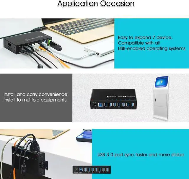 7-Port USB3.0 Adapter expands your connection, connect multiple peripherals simultaneously to increase productivity and entertainment needs