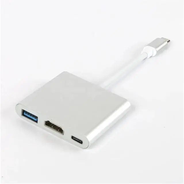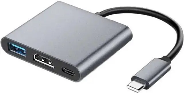 USB C HUB 3in1 TY>pe 3.0 to HDMI-Compatible Docking Station PD Fast 4K HDMI Adapter Splitter for Computer(Grey)