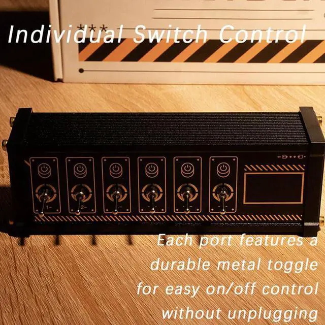 Individual Switch ControlEach port features a durable metal toggle for easy on/off control without unplugging