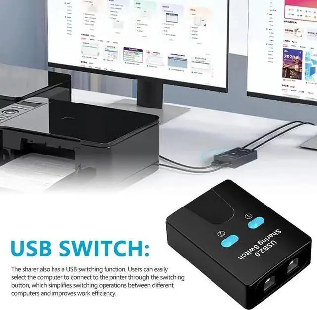 1.Efficient Connectivity: Say goodbye to the hassle of multiple USB devices. Our Printer Sharing Switch connects two sources to a single devices, allowing for seamless toggling between them without constant plugging. This smart technology not only saves you time but effectively protects your devices from wear and tear.