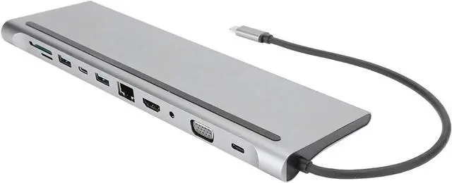 11-IN-1 MULTIFUNCTIONAL HUB: This Type-C expan dock transforms your laptop into a ful workstation with 11 essential ports, incl USB 3.0, , , RJ45 Ethernet, SD/ readers, PD charging, and 3.5mm o. neety.