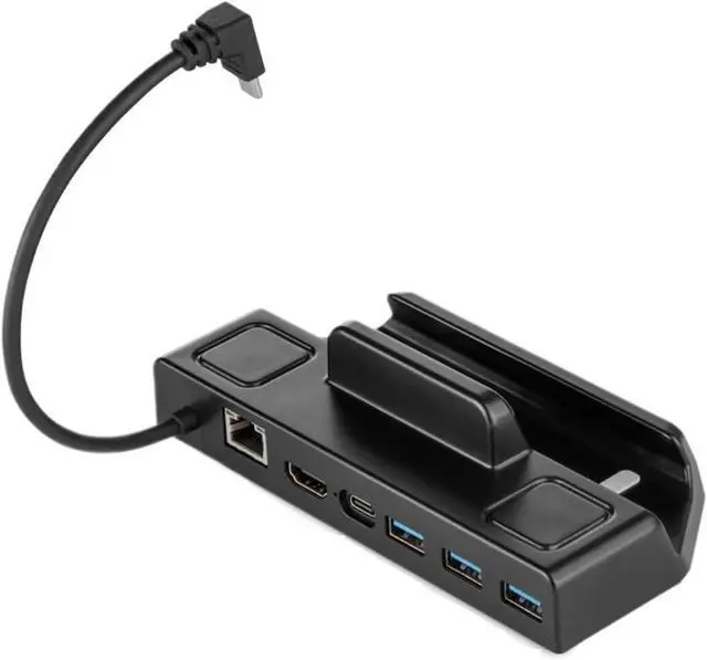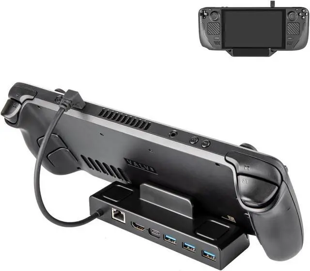 The TV dock is designed for Steam Deck, equipped with an 4K HDMI output, a USB TY>pe C PD port and 3 USB 3.0 data ports. You can enjoy playing video games on TV while your device is as well.