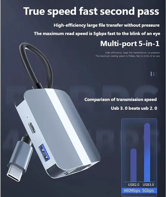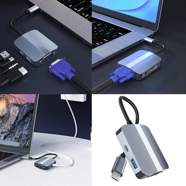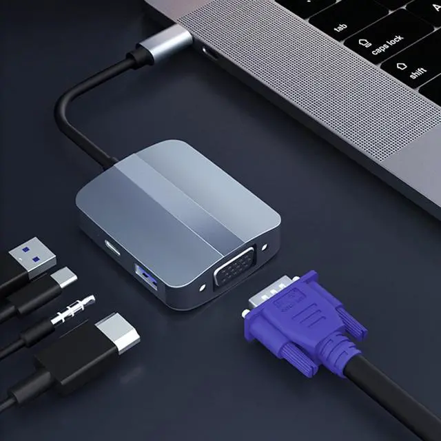 Maximize productivity with this 5 in 1 USB C featuring a 3.5mm port for HDTV, USB C charging, VGA, USB3.0 and connectivity