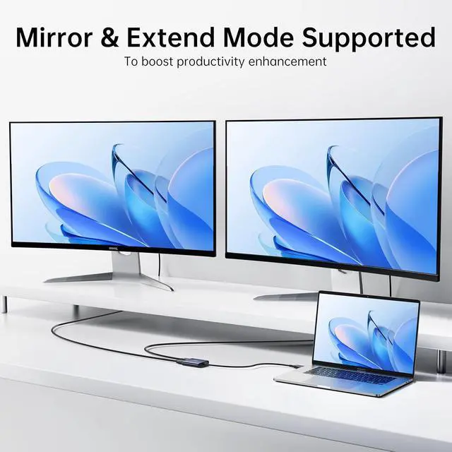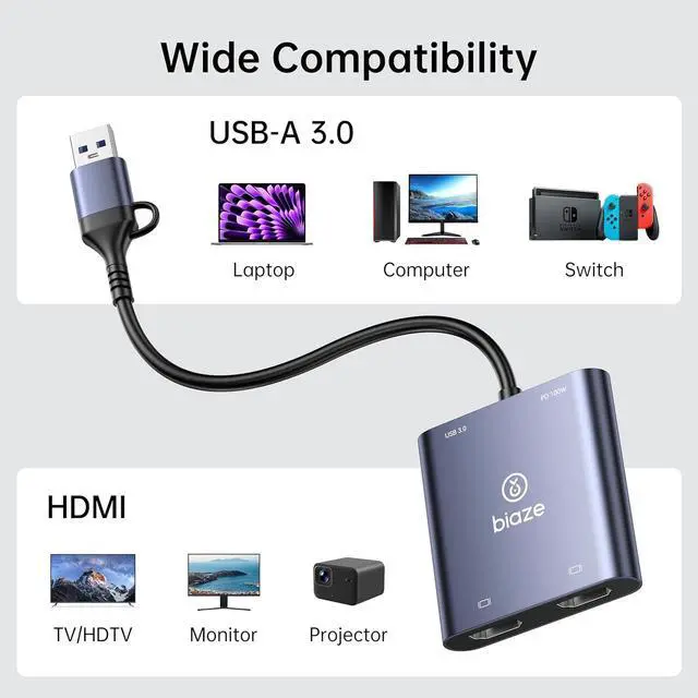 Universal Dual Monitor Adapter for Windows & Mac This USB C to Dual HDMI adapter and USB 3.0 to dual HDMI hub offers ultimate compatibility. It seamlessly supports extended (dual-screen) and mirror modes for MacBook Pro/Air with M1, M2, M3 chips, Windows 10/11 laptops, iPad Pro, and Chromebooks. A true universal laptop adapter for work from home and office.