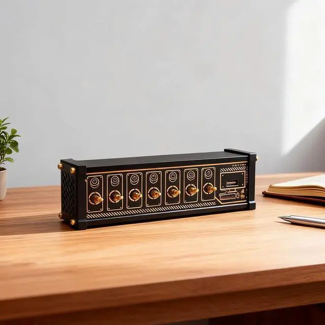 Switches: Gold-plated PCB and metal toggle switches ensure durability and a retro-futuristic aesthetic. Its cyberpunk design makes it an ideal choice for high-end desktop decorations.