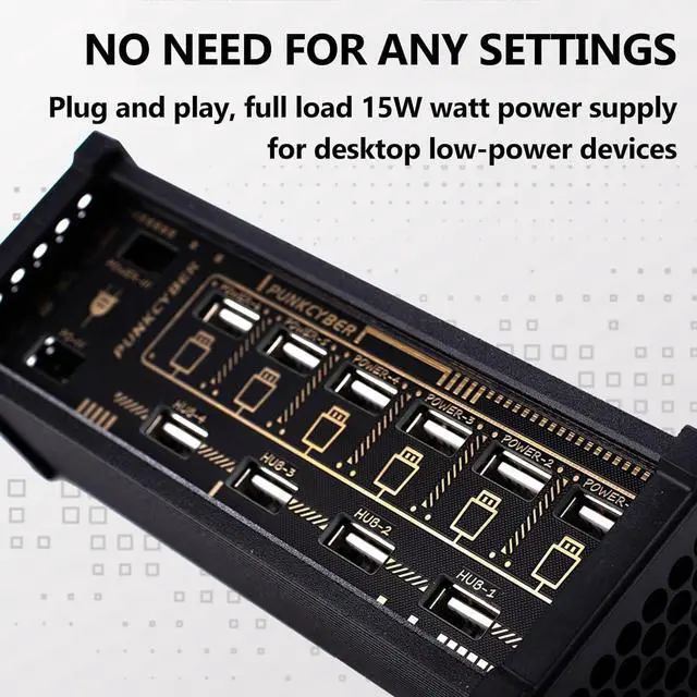 Power Splitter: Adaptive power output, providing up to 15W of total power to desktop devices. Supports 5V input via Type-C ports, functioning as a multi-functional power splitter to power multiple low-power devices.