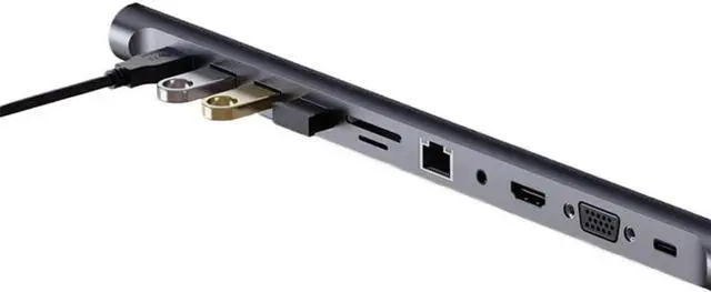 Includes a dedicated USB C pass-through port to power your laptop while using the hub