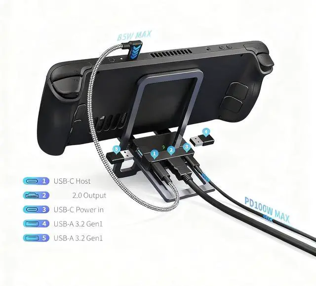 Engineered with a folding metal frame and folding mechanism, this expandable hub integrates Type C Host compatibility, and rapid charging capabilities for modern devices.