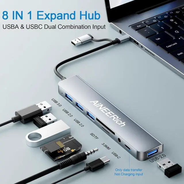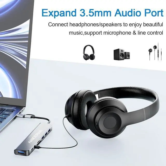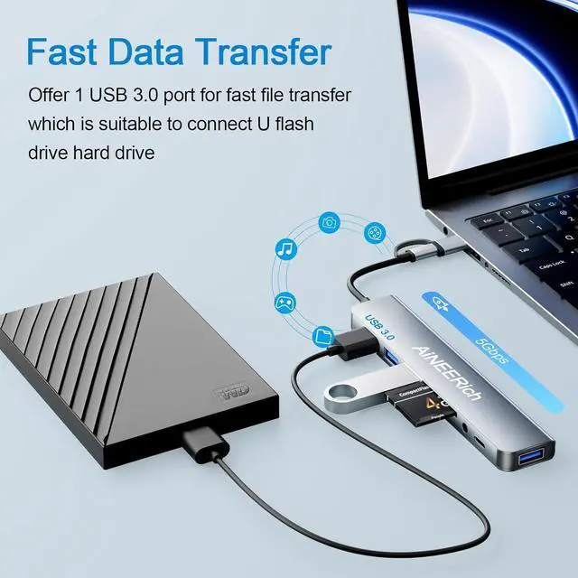 Multi Ports USB Hub: This USB C hub have 1x USB 3.0 port, 4x USB 2.0 ports, 1x USB C port and 1x 5V/1A charging port. One hub meets your needs of charging, transfering and download music, movies, photos and other files. The USB 3.0 supports 5Gbps transfer speed, fast enough to transfer a 10 GB file in just in 20 seconds. The USB 2.0 supports 480bps transfer speed.