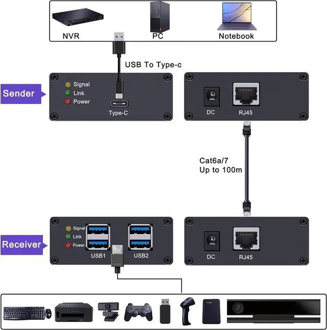 [5Gbps SuperSpeed USB 3.0 Data Transfer] Extend your USB 3.0 connection up to 330 ft (100 m) over a single Cat6a/7 Ethernet cable. Enjoy stable, high-speed data transfer up to 5 Gbps, perfect for external hard drives, HD webcams, USB audio interfaces, and more.