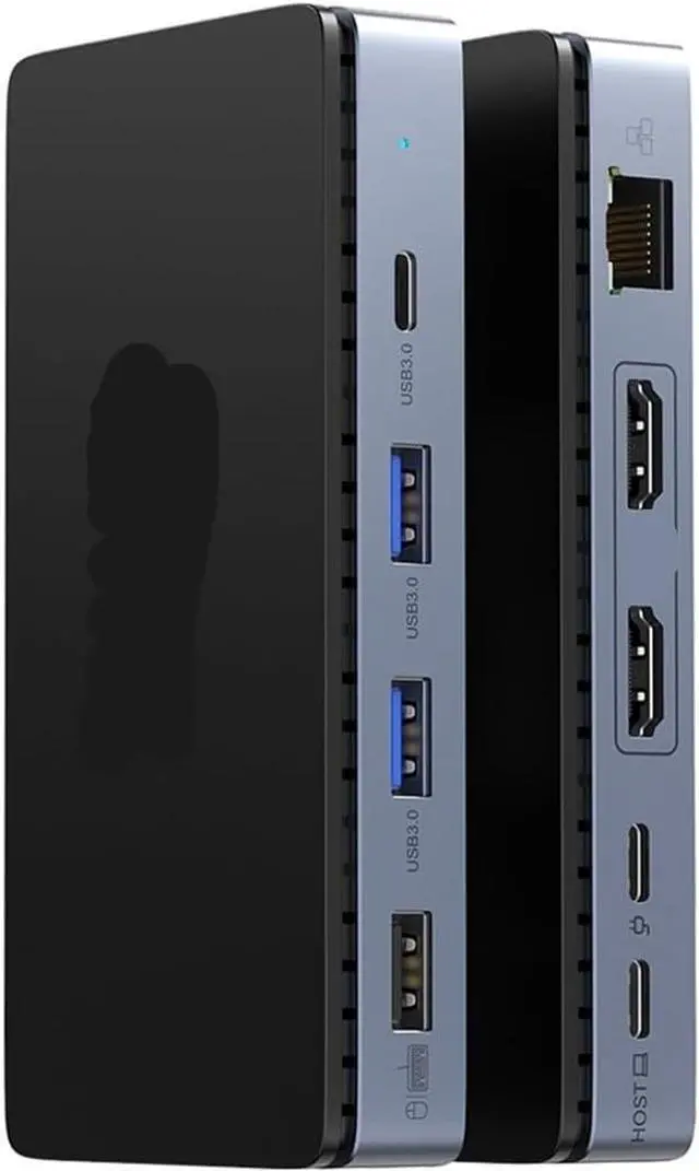 8-in-1 USB C Docking Station:8 ports including 2 DP, 3 USB 3.0, 1 USB 2.0, 1 Ethernet, and 1 PD 3.0 for versatile connectivity.
