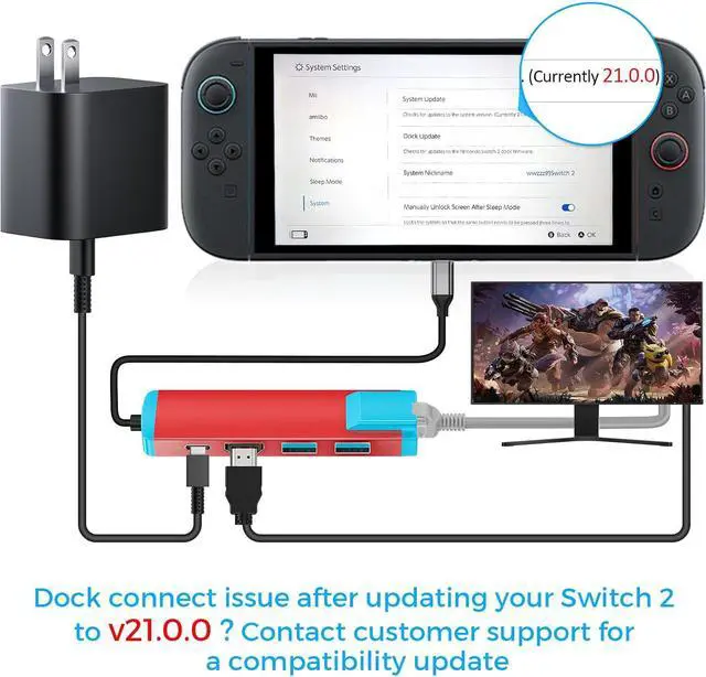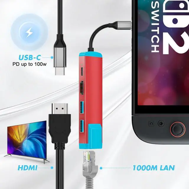 Replacement for Official Switch 2 Dock:The switch 2 dock is designed with 1*4K@60Hz HDMI video output port, 1*USB-C power port, 1*USB 3.0 port,and 100W PD USB C power charging port.(Note: Type C PD charging port is only available for devices with PD protocol).