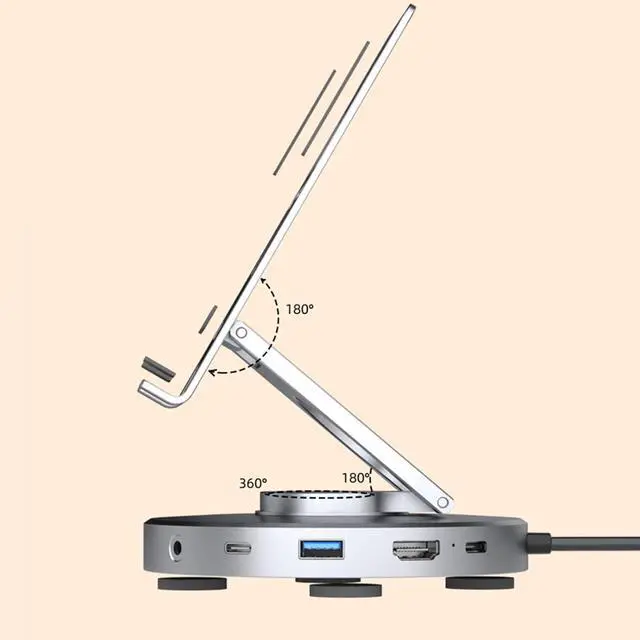 Multifunctional Use: You can use it as a tablet stand or as a USB C docking station for tablets, gaming consoles, and laptops. Folds flat for easy storage in your bag. Connect your display, projector, TV, sound devices, keyboard, mouse, hard drive, and more to this device.