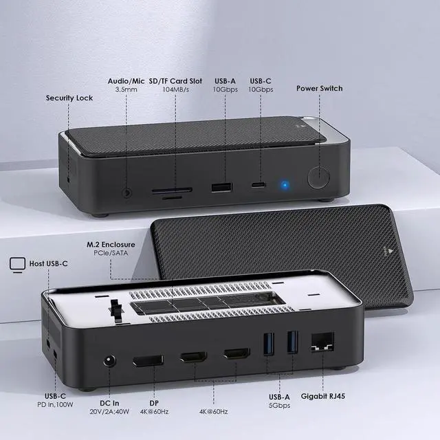 Innovative Design: Combining an M.2 SSD enclosure with a USB hub, this 13 in 1 USB C docking station expands storage space and supports various operating systems, providing versatility for all users.