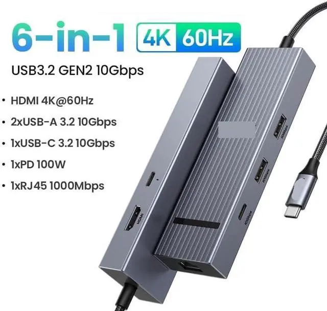 12-in-1 USB HUB Type-C to 2HDMI 4K120Hz DP USB3.2 10Gbps SD/TF RJ45 PD100W for Mac Book Laptop Accessories Docking(6-in-1 HDMI RJ45)