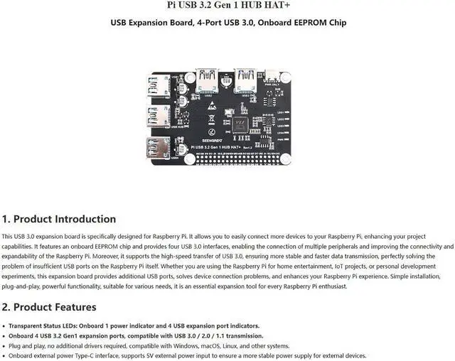 Expand your Pi with 4 USB 3.0 ports for high-speed data transfer up to 5 Gbps, solving connectivity issues effortlessly.