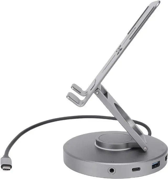 Ergonomic Flexibility: Tailor your workspace with this adjustable stand that accommodates screens up to 16 inches, offering customizable height, angle, and orientation for optimal viewing comfort. as a USB C docking station or standalone tablet holder, it adapts to your needs whether you're typing, watching videos, or gaming on the go. The sturdy design provides stable support for laptops when folded into dock mode, enhancing airflow and usability during extended sessions. While