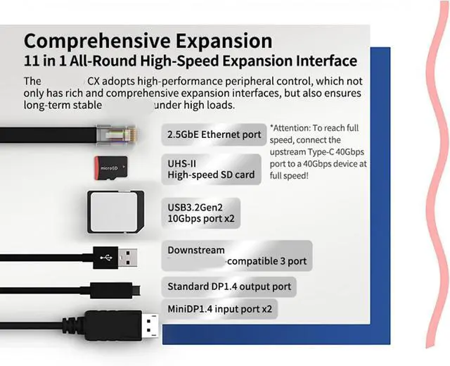 Double 40Gbps TypeC port for connecting to upstreaming devices.