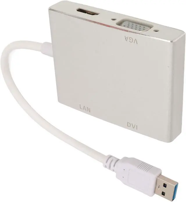 [4K MULTI-DISPLAY SUPPORT] Transform your single USB port into a powerful 4-display workstation with this 4-in-1 adapter featuring crystal-clear 4K HDMI, VGA, DVI and Ethernet ports. Enjoy seamless multi-tasking across monitors, projectors and TVs with plug-and-play simplicity.