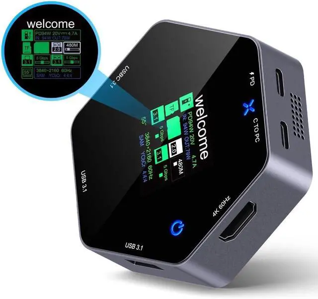 Experience the connection of the 8-port USB C hub with USB A, USB C and SDTF card slot, providing 4K@60Hz video output and charging capabilities for efficient power supply and data transfer