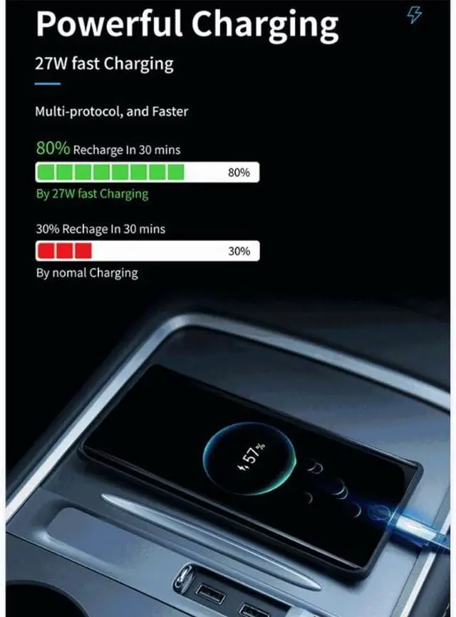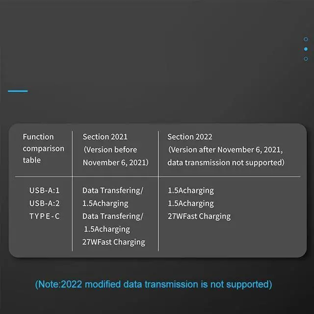 This center console hub has LED lights, you can manually press the button to light up your storage compartment. When you want to turn off the LED light, you can choose to press the switch, or wait for two minutes to turn off automatically.(Note: produced after November 6, 2021, does not support data transmission.)