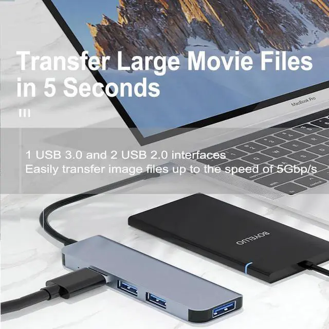 Extreme Fast Data Transfer : Our usb expansion hub uses the most advanced chip controls, make each port independently to ensure no interference between devices. 3 USB and 1 USB-C data ports can work simultaneously at up to 5 Gpbs speed fast data transfer without disconnecting, transferring files in seconds. It allows you to easily multitask and increase productivity.