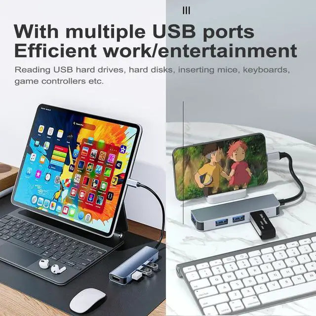 Compact and Portable Design: The ultra-slim design allows the multiports usb c hub to easily fit into a pocket or briefcase, making it ideal for home office, corporate office, or long distance travel .