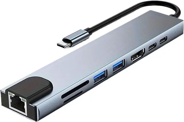 8-In-1 TY>pe C Docking Station, Featuring A USB C Hub With RJ45 And PD Ports