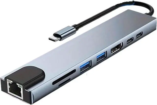 8-In-1 TY>pe C Docking Station, Featuring A USB C Hub With RJ45 And PD Ports