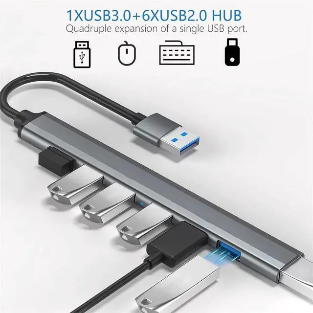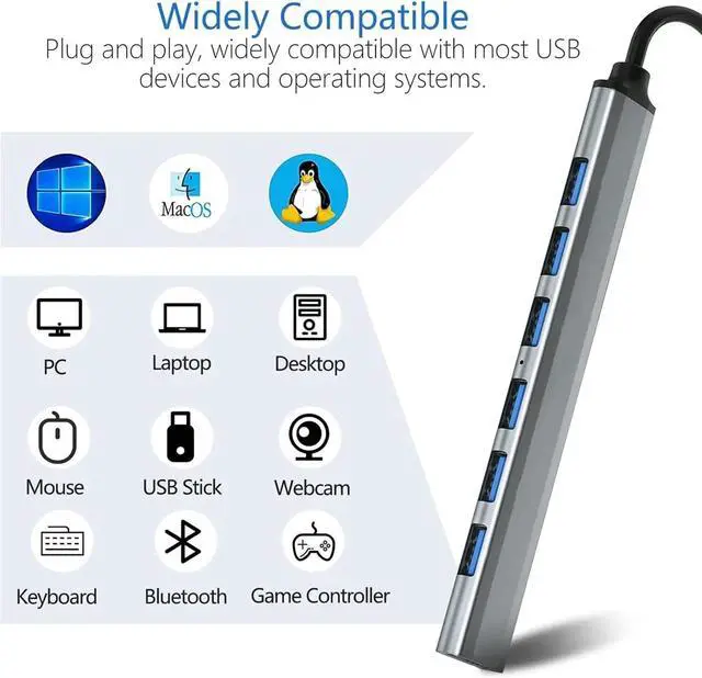 Wide AppliactionBERLAT 7-port USB Extender applies to various devices: laptop, pc tower, XBOX, PS4, flash drive, keyboard, mouse, card reader, HDD, cellphone OTG adapter, printer, camera, USB fan or any other USB Peripherals.