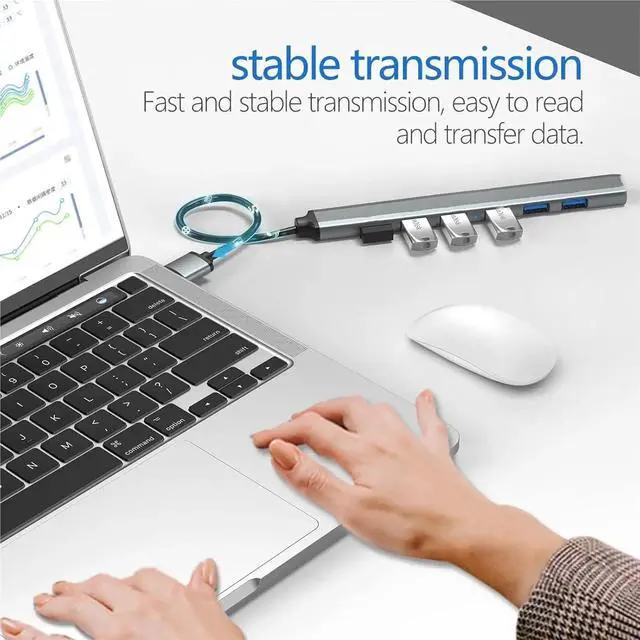 High-Speed Data TransferThe usb c hub and usb hub equipped with USB Hub 3.0 port, this extra ports for laptop hub enables fast data transfer speeds of up to 5Gbps, allowing you to transfer large files, photos, and videos in seconds. Enjoy a seamless and efficient workflow with this powerful expansion dock.