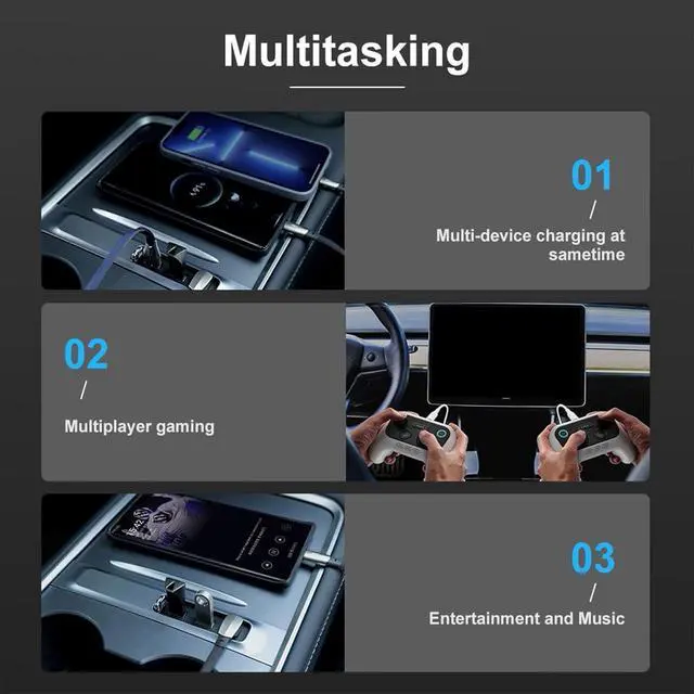 This center console hub has LED lights, you can manually press the button to light up your storage compartment. When you want to turn off the LED light, you can choose to press the switch, or wait for two minutes to turn off automatically.(Note: produced after November 6, 2021, does not data transmission