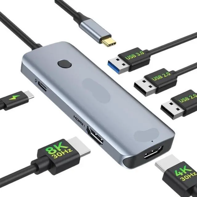 Features dual HDMI ports supporting 8K resolution at 30Hz for ultra-definition displays