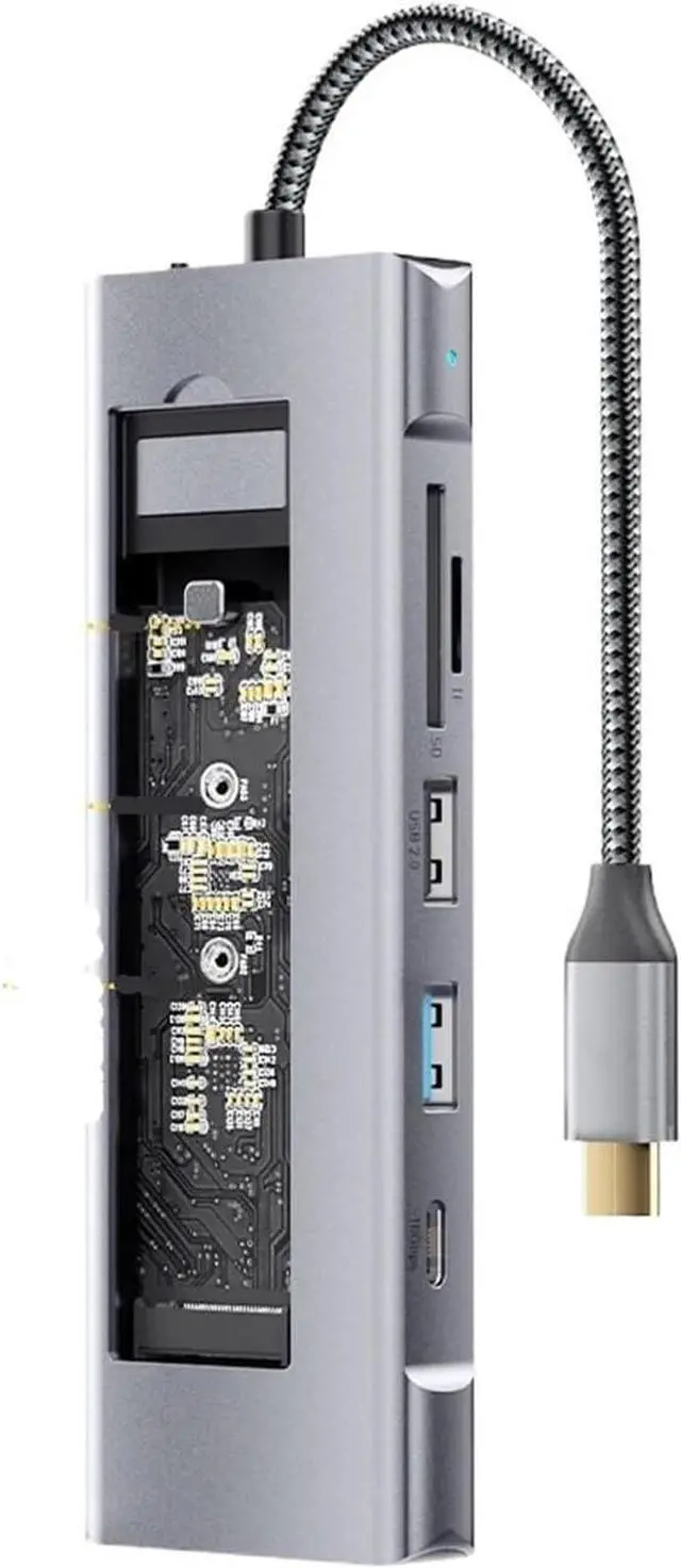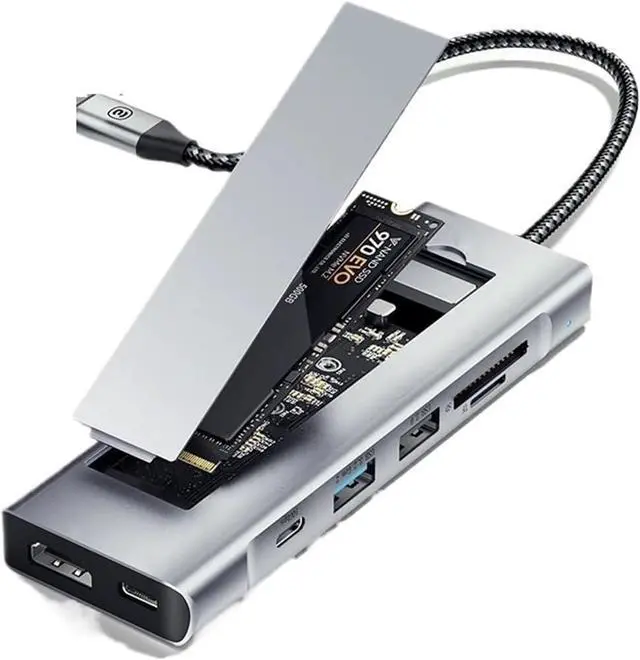 8-in-1 HDMI Model:HDMI-compatible*1 + USB3.0*1 + USB2.0*1 + USB C*1 + PD 100W*1 + SD + TF + M.2 SSD