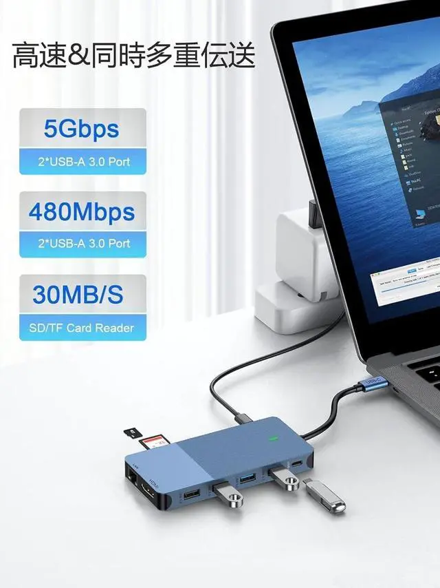 Gigabit Ethernet & Dual Card Reader: Stable 1000Mbps wired network + SD/TF slots (supports 2TB cards, simultaneous read).
