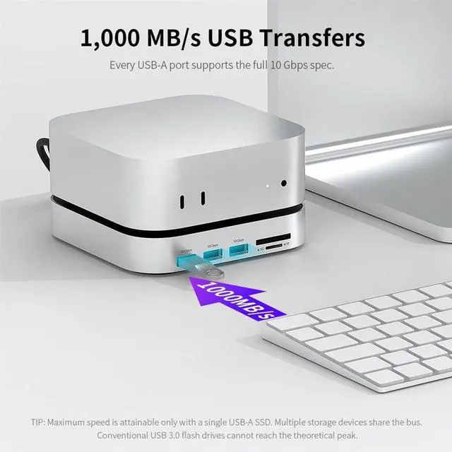1. USB Hub Spilter with Dual-channel SSD + USB design, with no interference between the two, ensuring the SSD remains stable;
