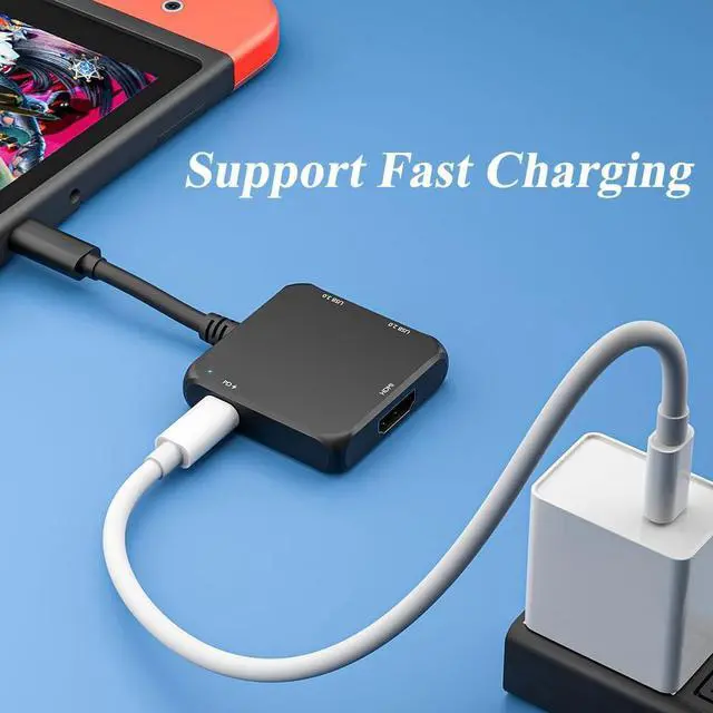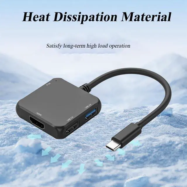 4 in 1 USB C Hub: This USB C Hub is equipped with a USB 2.0 port, a USB 3.0 port, a HDMI port, a PD fast charging port which can work at the same time; it can satisfy your different use need that is very efficient and convenient.
