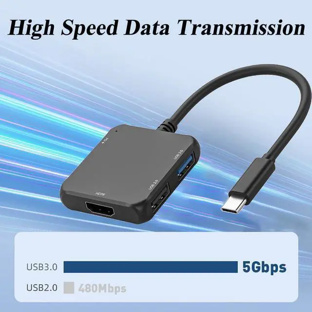 High Speed Data Transmission: The data transmission speed of USB 3.0 port is up to 5 Gbps, the speed of USB 2.0 port is up to 480 Mbps; this 4 in 1 USB C Hub supports transfer datas or files in few seconds.