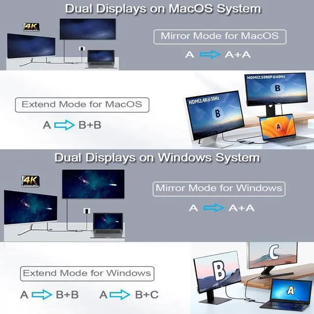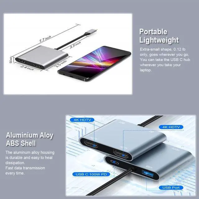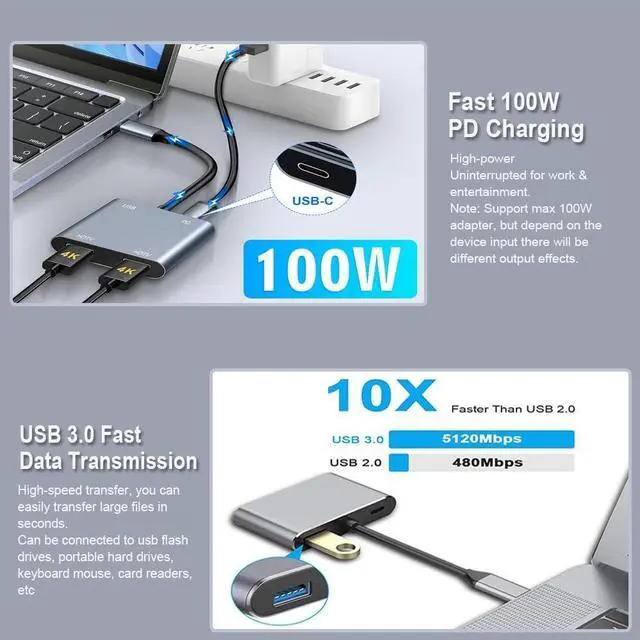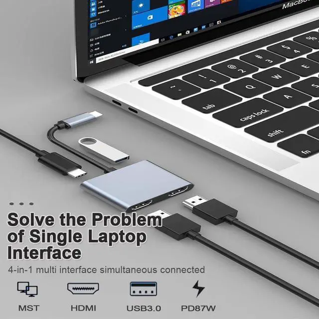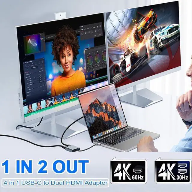 Dual 4K Video OutputThis USB-C to HDMI adapter allows you to mirror or extend your laptops display to two monitors simultaneously with resolutions up to 4K@30Hz, or up to 3840X2160P@60HZ when using a single HDMI port. Please note: The video output will be 4K only if your device supports 4K resolution, please make sure to use an HDMI 2.0 or better cable