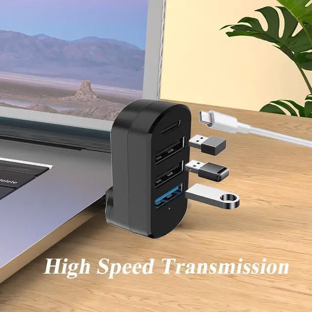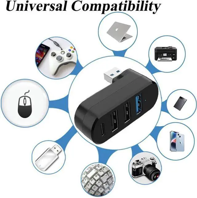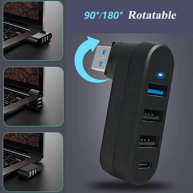 90°/180° Degree Rotatable: The 90°/180°Degree Rotation design of this USB 3.0 Hub allows you to adjust its angle freely when you use. It is convenient and suitable for different use occasions.