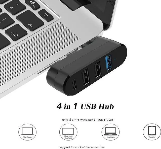4 In 1 USB Extender: This USB Hub has 3 USB ports and 1 USB C port which supports 4 ports to work at the same time and can expand your USB port devices into the 3 USB ports and 1 USB C port.