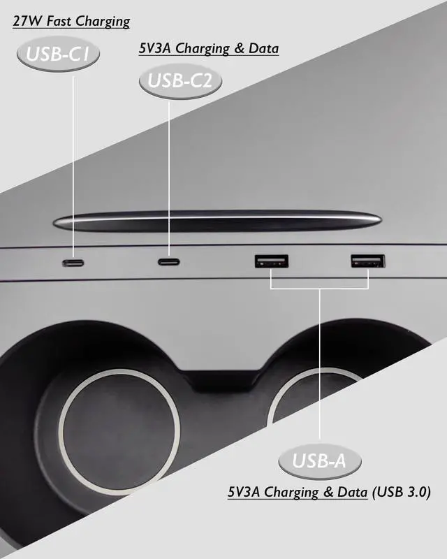 PLEASE NOTE: As you know the USB port in the 2022 and later Tesla Model Y and Tesla Model 3 center console itself does not support data transfer. This Tesla phone charger/USB hub/docking station is compatible exclusively with the Tesla Model 3 Highland, Model S, and Model X.