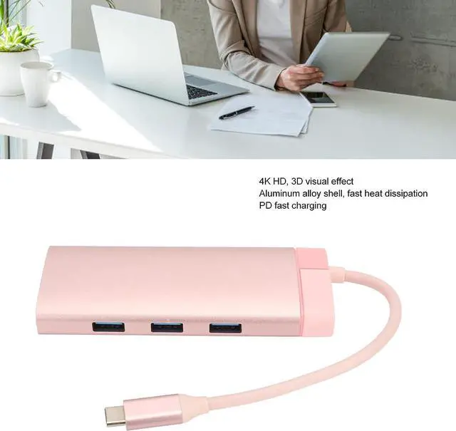 6-in-1 Connectivity: Our docking station offers a comprehensive solution for connecting multiple devices, featuring a PD port, three USB3.0 ports, an port, and an RJ45 port.